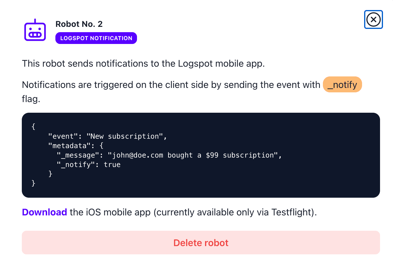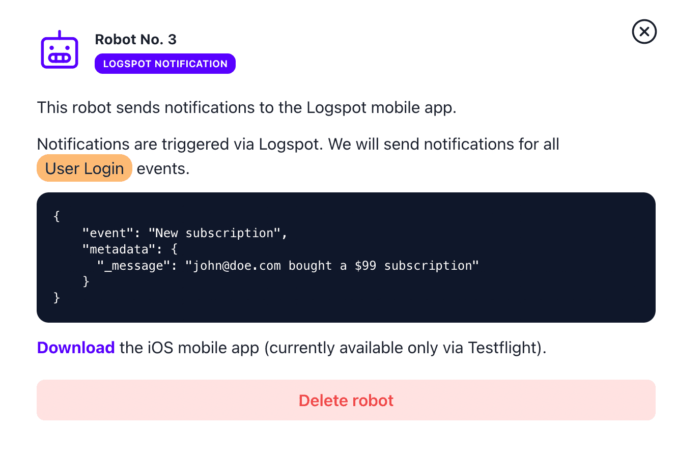 - Create a notification robot in the Logspot dashboard
