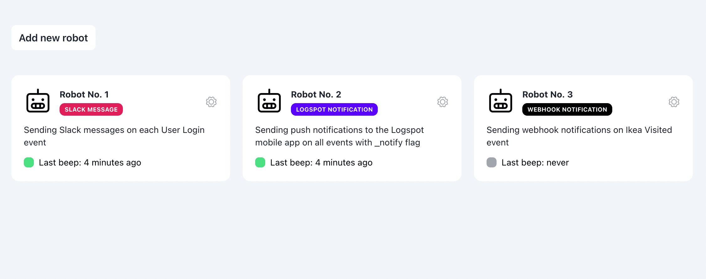 Learn how to use Logspot robots to get notified of important events.