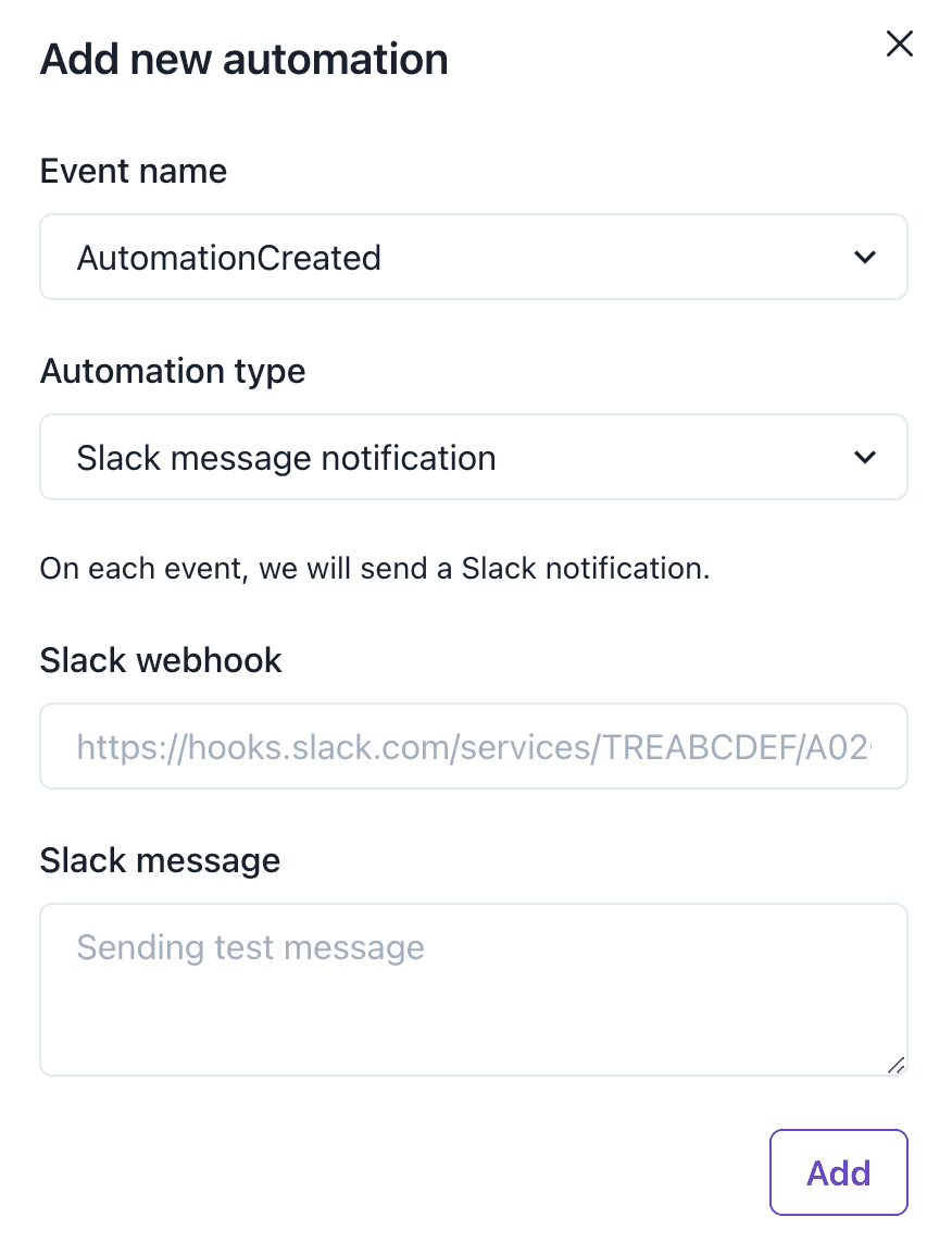 Send a Slack message on each event.