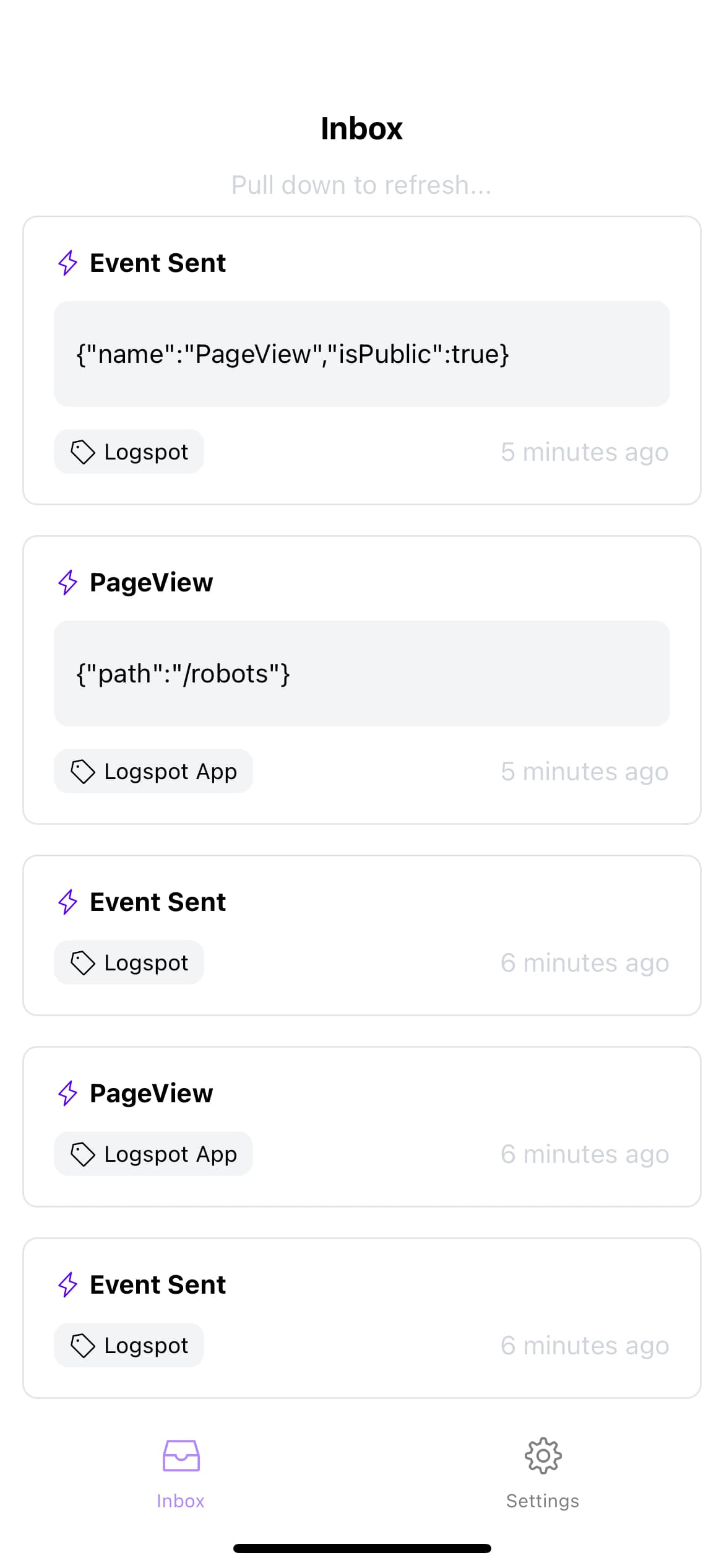 Send a mobile notification on each event via Logspot mobile app.